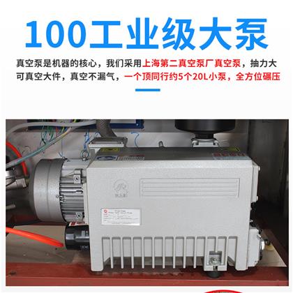 該機采用國內(nèi)知名品牌上海第二真空泵產(chǎn)生產(chǎn)的工業(yè)級大泵,引起德國普旭技術(shù),部分核心部件為全進(jìn)口,關(guān)鍵部位材質(zhì)含有微量金屬元素,真空泵壽命更持久,其中真空油為專業(yè)配方,耐高溫,比傳統(tǒng)真空泵油更耐用。抽氣速率為100m3/H,