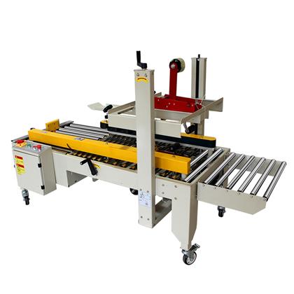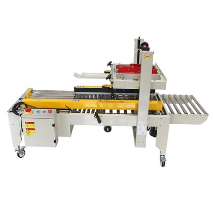 十字封箱機(jī)是一款組合型設(shè)備,主要是采用我們常用的半自動(dòng)封箱機(jī)或折蓋封箱機(jī)完成一字封箱,然后通過側(cè)推機(jī)構(gòu)將紙箱進(jìn)行90°轉(zhuǎn)向,然后進(jìn)入半自動(dòng)封箱機(jī)完成十字封箱包裝。