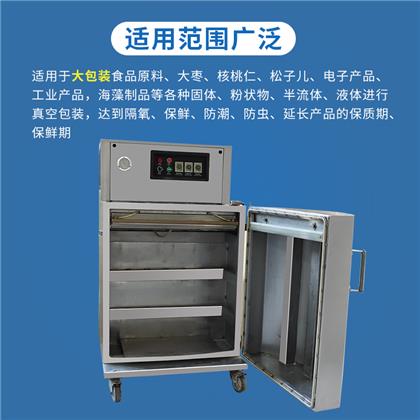 立柜式真空包裝機采用優(yōu)良不銹鋼材料結構,主要用于粉末、顆粒、半流體或大包裝物體的真空包裝。該機型真空室容積大,袋口立封形式??蛇B同產品外包裝(如:箱、桶、盒)。直接擱置于真空室內,抽真空,封口,冷卻,放氣,全過程均可自動控制及完成。開門式的操作形式,便于重物擱置。(該型機可根據用戶特殊尺寸、配置要求定做)。