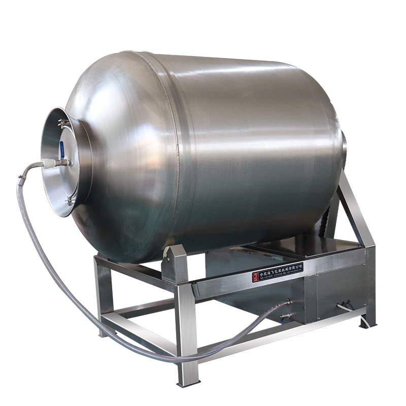 真空滾揉機筒體采用SUS304不銹鋼材質制作,圓筒狀設計使?jié)L揉空間加大,運行噪音小,三片漿葉圓弧形設計,使腌料與原料肉分布均勻,避免了對原料肉表面的傷害。防水電腦版控制柜與時間繼電器控制結合,方便客戶根據(jù)自己的生產(chǎn)工藝要求調(diào)節(jié)滾揉時間、靜汁時間。整機外觀采用表面鏡面拋光處理,外觀整潔、大方。