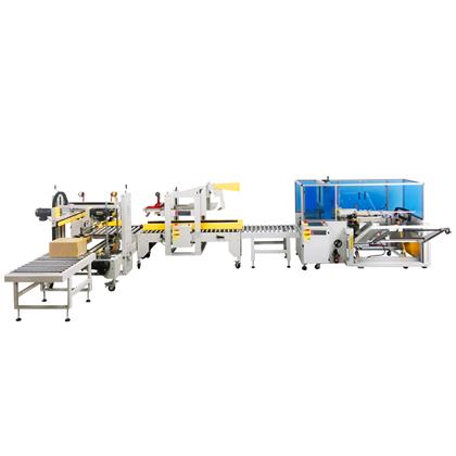 如需要打包可連接全自動打包,進行多元化搭配。如在第一步與第二步間加入產(chǎn)品自動裝箱,屆時本包裝流水線將可以基本實現(xiàn)無人化全自動從開箱到打包好。